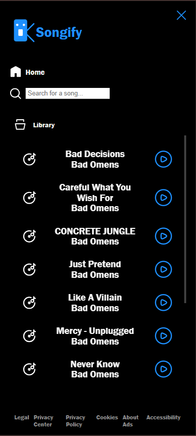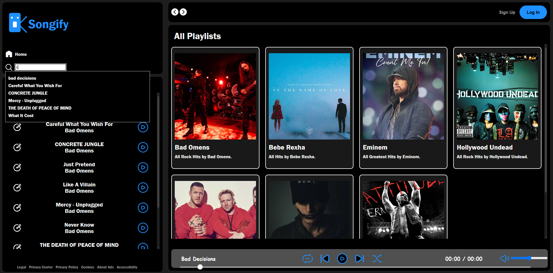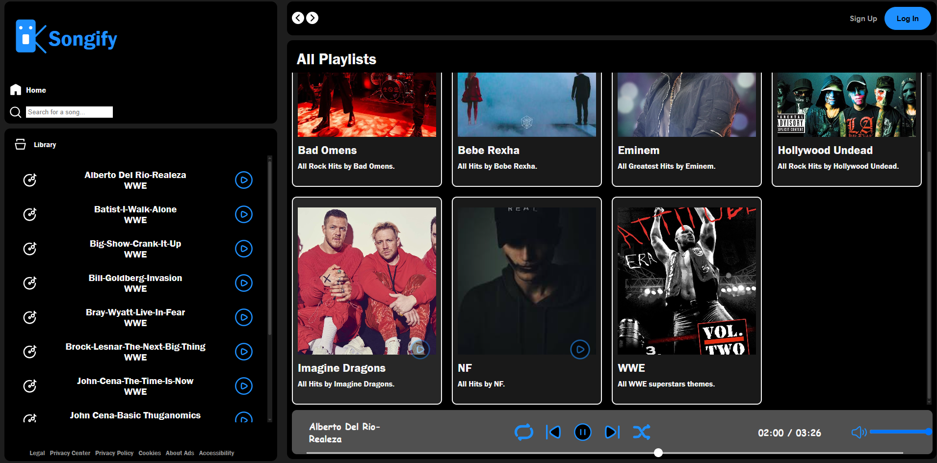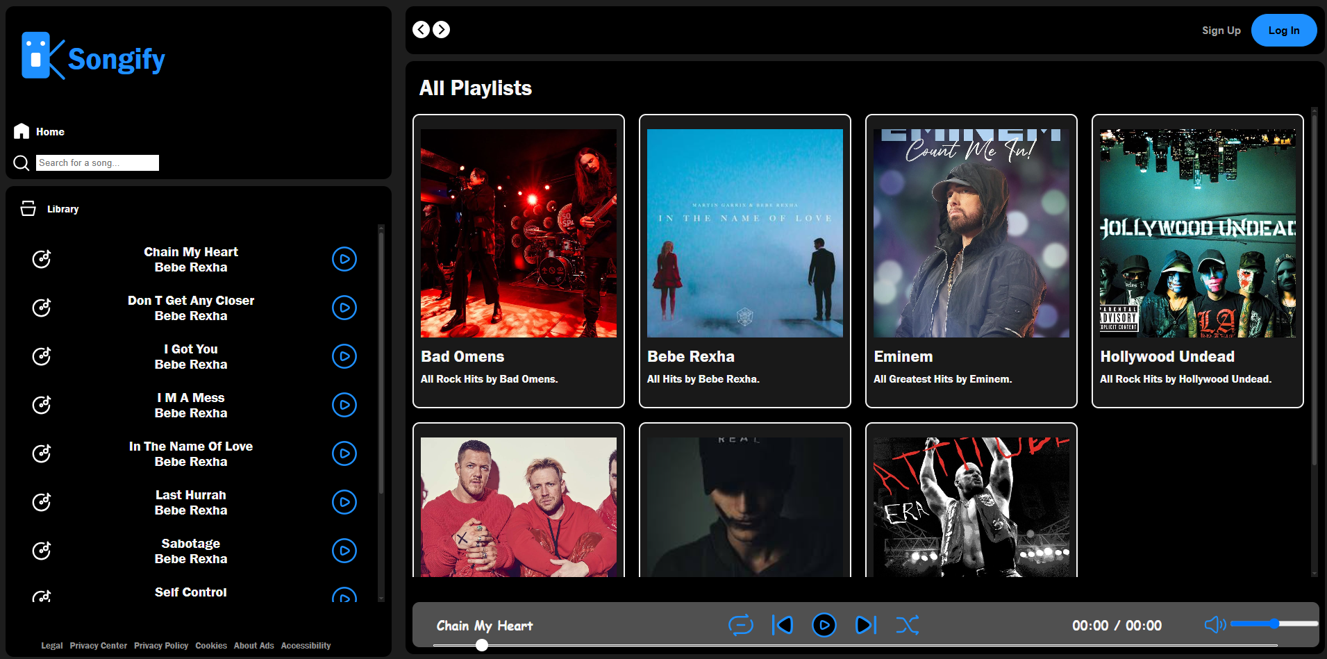 Songify is a fully functional music player built using HTML, CSS, and JavaScript. It automatically detects songs from local folders and dynamically displays albums using metadata fetched from a JSON file. This project helped me explore DOM manipulation, audio APIs, and interactive UI design while also focusing on responsiveness and a smooth user experience across devices.